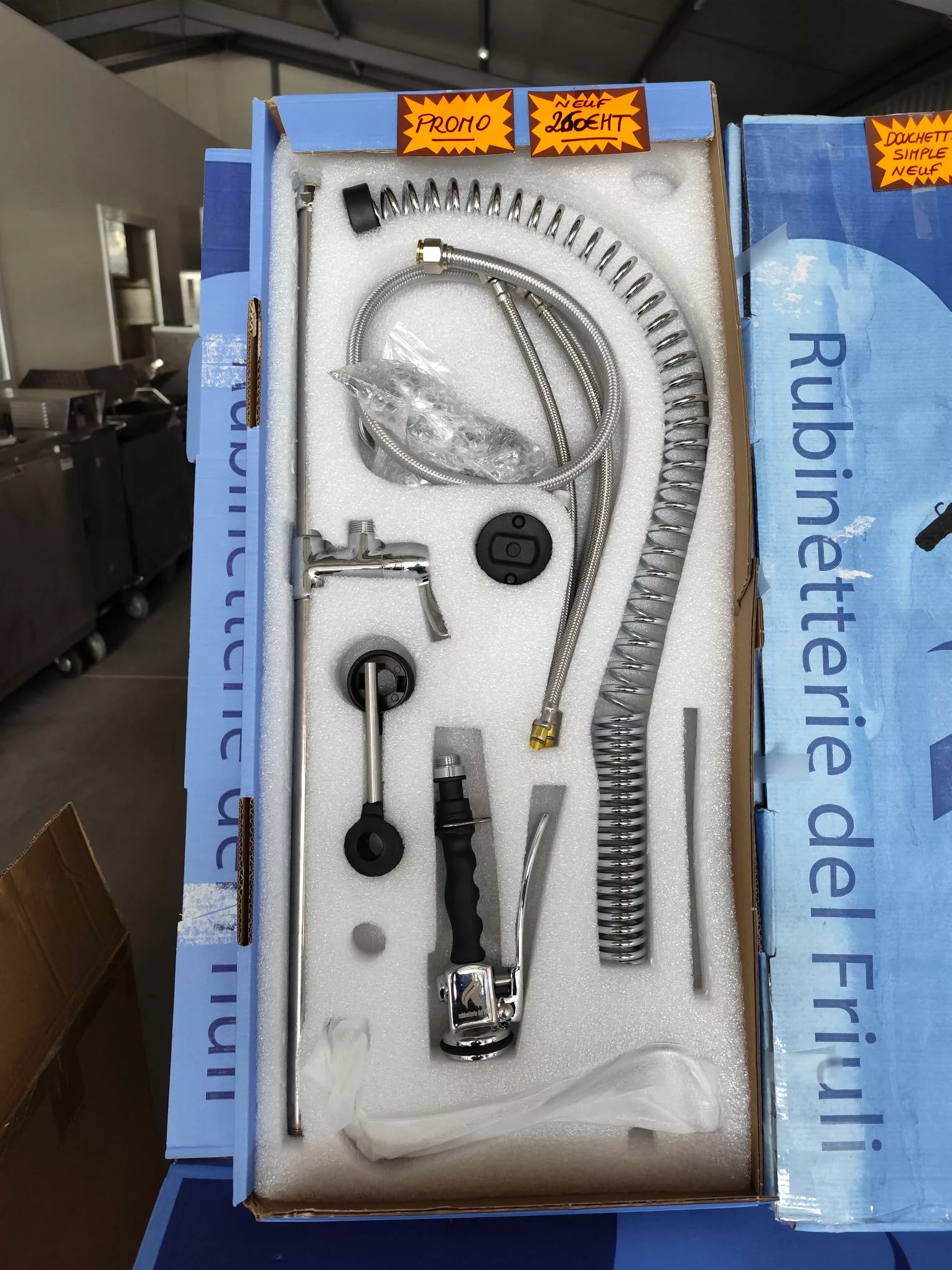 | Autres | Ecartement max. du mur : 130mm / Mélangeur mono-commande avec manettes 1/4 de tour et un robinet supplémentaire avec col de cygne / D.18x250mm / Débit : 17L/min à 3bar / Perçage D.30mm |