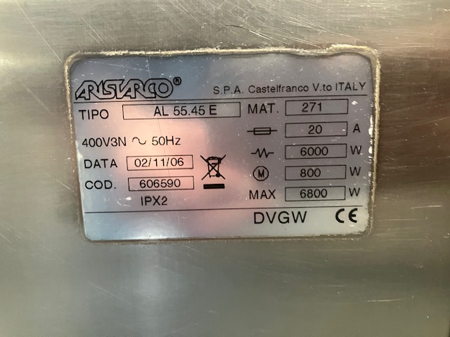 | Autres | Puissance : 6.8kW / Hauteur de passage utile : 450mm / Pompe doseuse de produit de lavage / Pompe doseuse de produit de rinçage / Vidange gravitaire / Hauteur maxi vidange : 250mm / Bras de lavage et rinçage inox / Filtre inox / Régulation électronique / Dotation : 1 panier inox 545x545mm + 1 panier inox range-grilles (600x400mm) 550x500mm (5 grilles) |